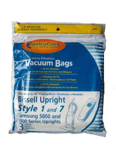 Contact me if you are interested in larger wholesale quantities of this or other products.Style 1 & 7 upright Bissell's #30861Samsung 5000 & 7000 series uprightsType VP-U100F, VP-U100 for Samsung Models.Designed to fit: All Bissell upright models using style 1 or style 7 bags ( fits original manufactures part # 30861, 3086, 32120, 32071, )Also fits these model and others:Bissell PowerForce TM 3522 Series, 3522-1Bissell PowerGlideTM 3545 series, 3345B, 3545C, 3545XBissell PlusTM 3550, 3553 seriesBissell Lift-Off 3554 Series All Samsung uprights models 5000 and 7000 series.Micro lined Envirocare Brand Vacuum Bags. Item is:Micron filtration Allergy BagMicro Lined BagsTraps Bacteria, Dust Mites, etc
